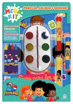Encante-se e divirta-se a valer com este kit de colorir de 3 Palavrinhas! Além de um livro cheio de aventuras, você vai encontrar lápis de cor, borrachas coloridas e em diferentes formatos, e um apontador! Não é demais?