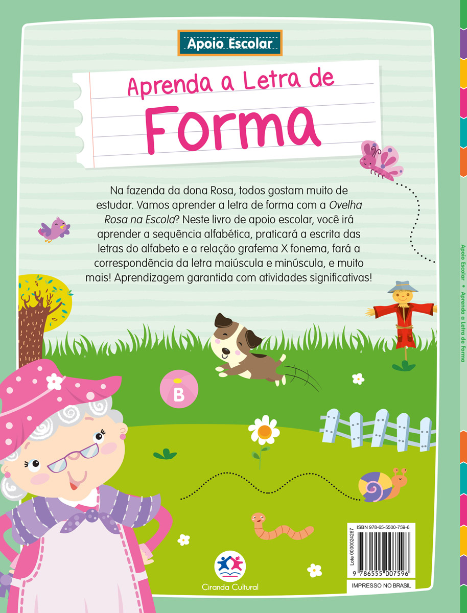 Assuntos (tags): Alfabetização, Aprendizado, Coordenação motora, Língua portuguesa, Apoio escolar, Cartilha, Escrita, Letra de forma, Letras, Letra de mão, Comunicação, Direito das crianças e dos adolescentes