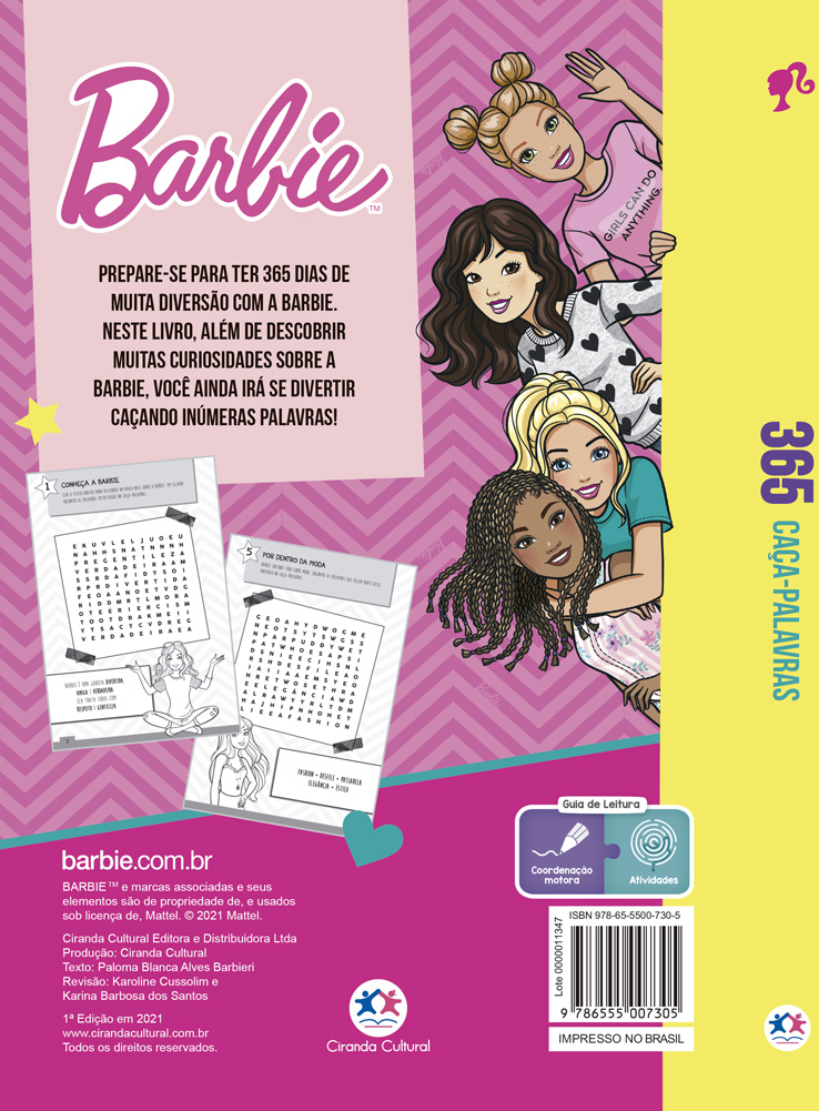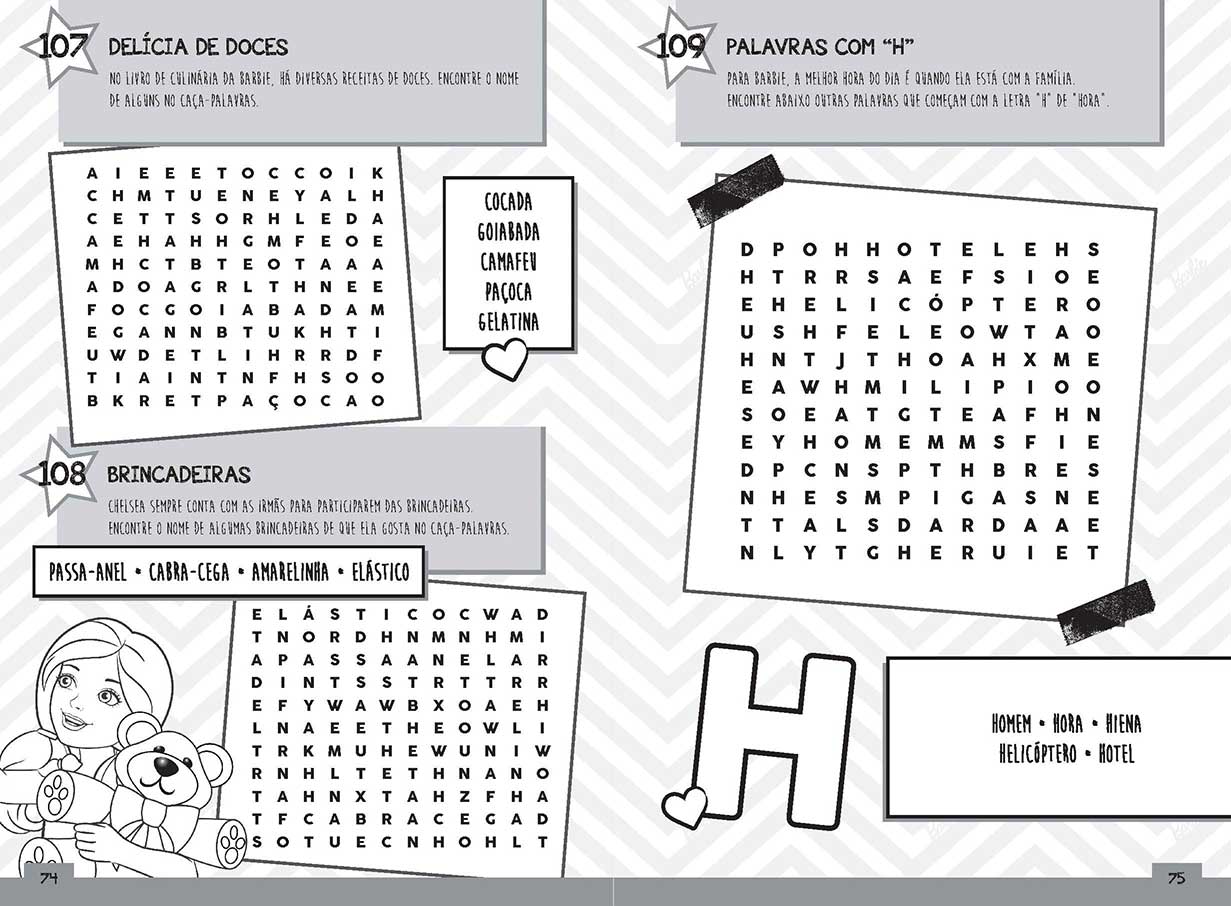 Assuntos (tags): Atividades, Passatempos, Curiosidade, Barbie, Diversão, Caça-palavras, Palavras, Aprendizado