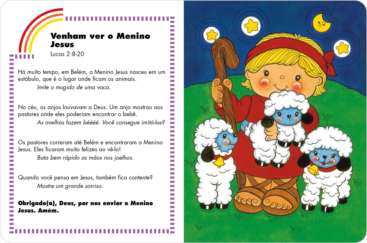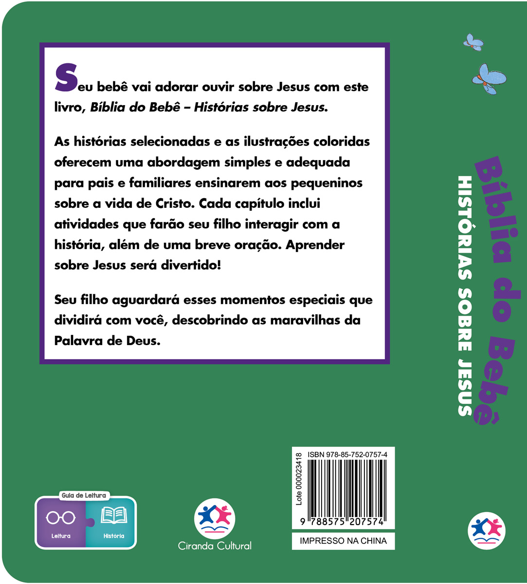Seu bebê vai adorar ouvir sobre Jesus com este livro, Bíblia do Bebê – Histórias sobre Jesus. As histórias selecionadas e as ilustrações coloridas oferecem uma abordagem simples e adequada para pais e familiares ensinarem aos pequeninos sobre a vida de Cristo. Cada capítulo inclui atividades que farão seu filho interagir com a história, além de uma breve oração. Aprender sobre Jesus será divertido! Seu filho aguardará esses momentos especiais que dividirá com você, descobrindo as maravilhas da Palavra de Deus.