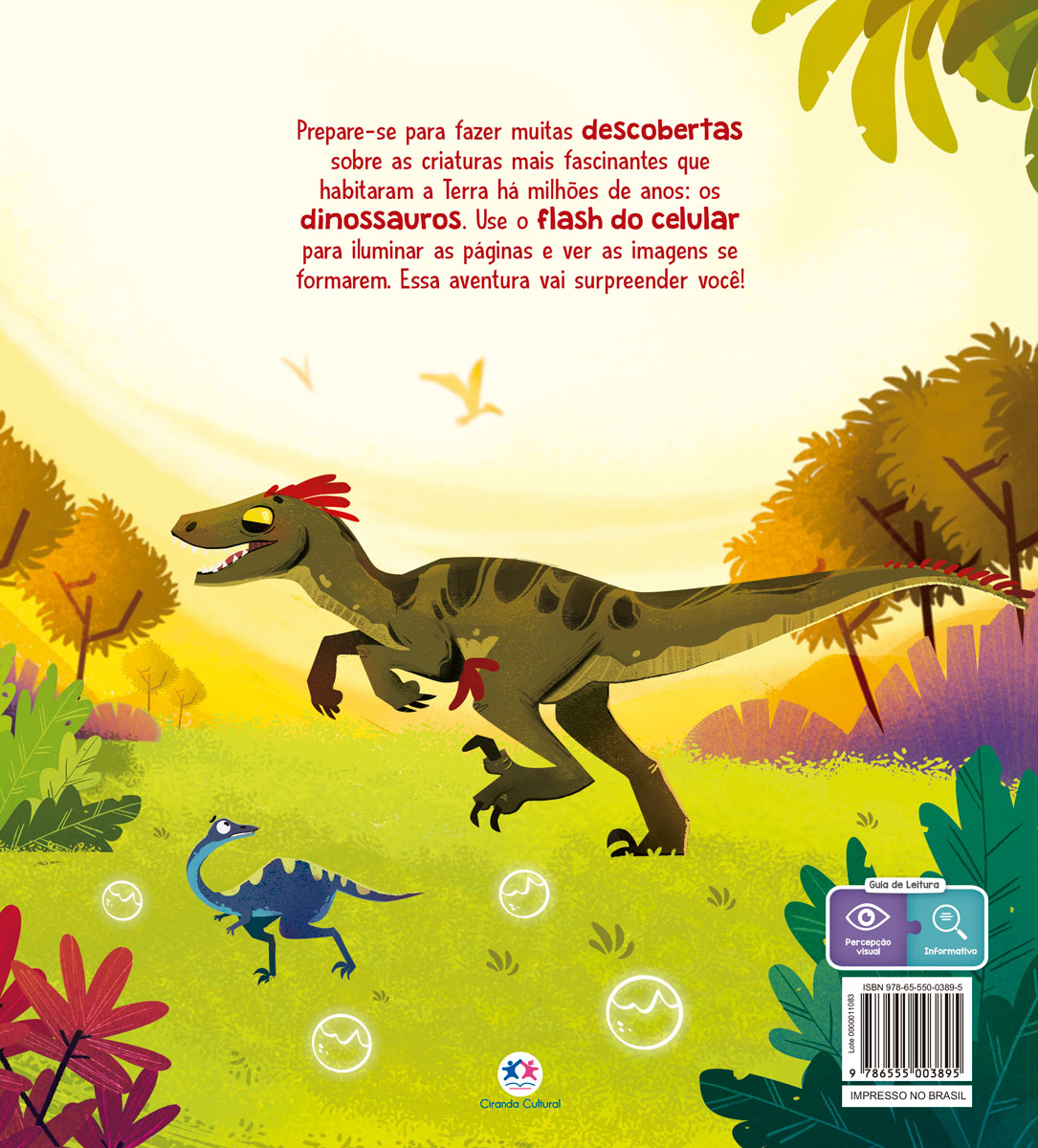 Prepare-se para fazer muitas descobertas sobre as criaturas mais fascinantes que habitaram a Terra há 65 milhões de anos. Com este livro, você vai aprender curiosidades fantásticas sobre diferentes dinossauros: Velocirraptor, Pterodáctilo, Tiranossauro Rex e muito mais. Use a lanterna mágica para iluminar as páginas e ver as imagens se formarem. Essa aventura vai surpreender você!