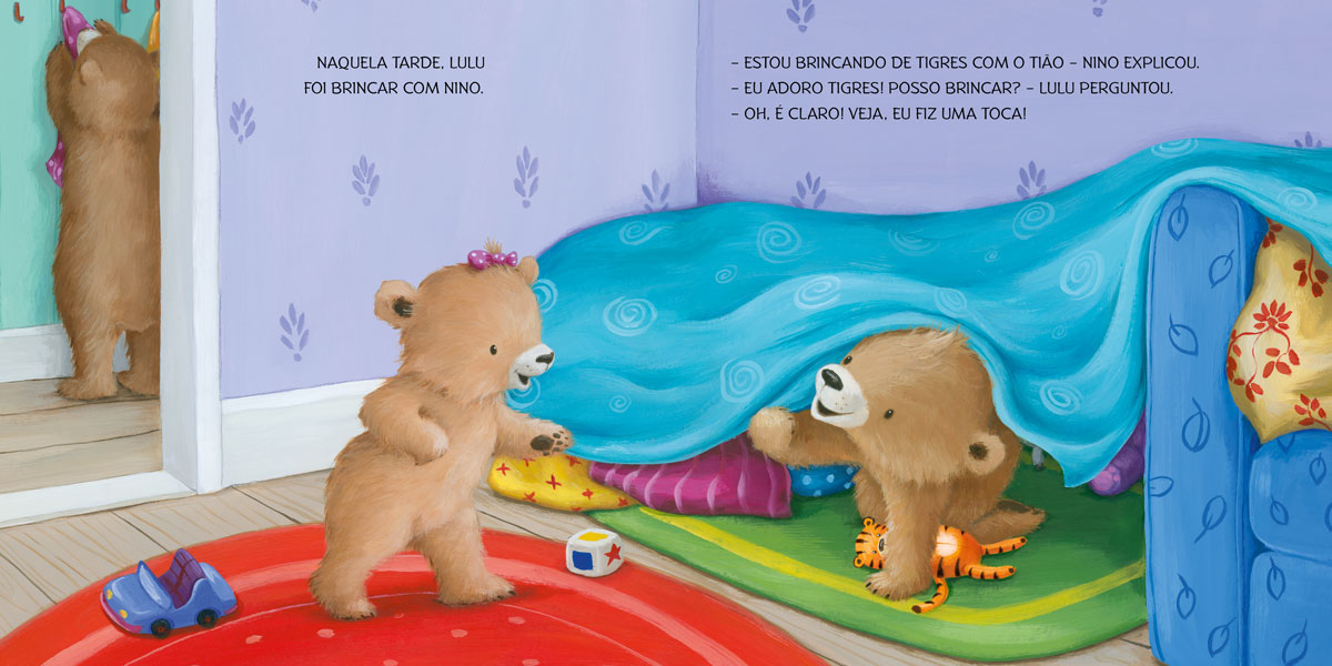Amigos todo o tempo – um, dois, três. Sempre juntos, vamos cantar outra vez! Quando Lulu vem brincar, o pequenino Nino não quer emprestar o seu tigre de pelúcia preferido. Mas a mamãe sabe exatamente o que fazer.