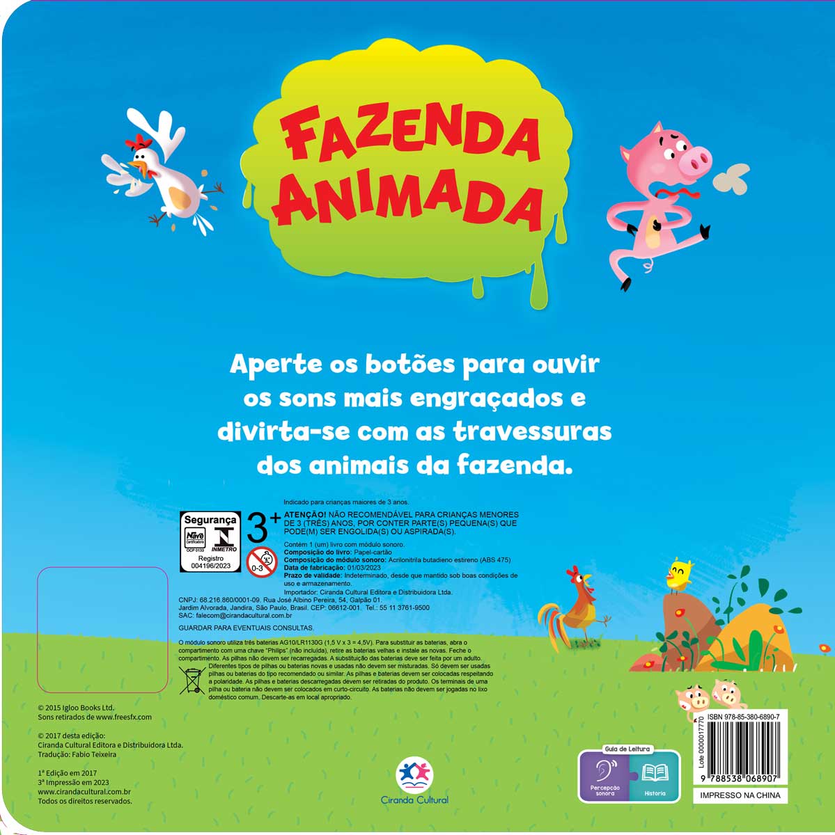 Aperte os botões para ouvir os sons mais engraçados e divirta-se com as travessuras dos animais da fazenda.