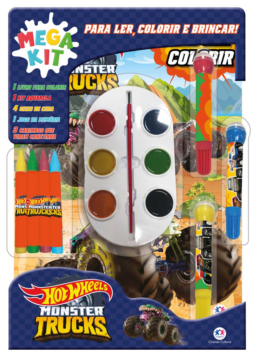Prepare-se para a diversão! Com os personagens favoritos da criançada, o Kit Super Color é cheio de cores e aventuras. Divirta-se com um livro para ler e colorir gizes de cera uma paleta de aquarela com seis cores canetinhas com carimbos acoplados e um jogo para recortar e brincar!