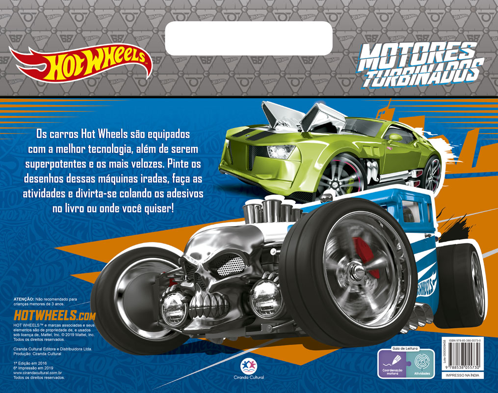 Os carros Hot Wheels são equipados com a melhor tecnologia, além de serem superpotentes e os mais velozes. Pinte os desenhos dessas máquinas iradas, faça as atividades e divirta-se colando os adesivos no livro ou onde você quiser!