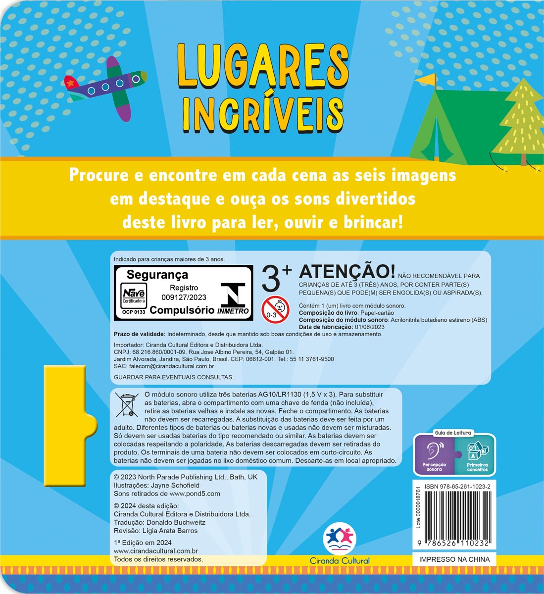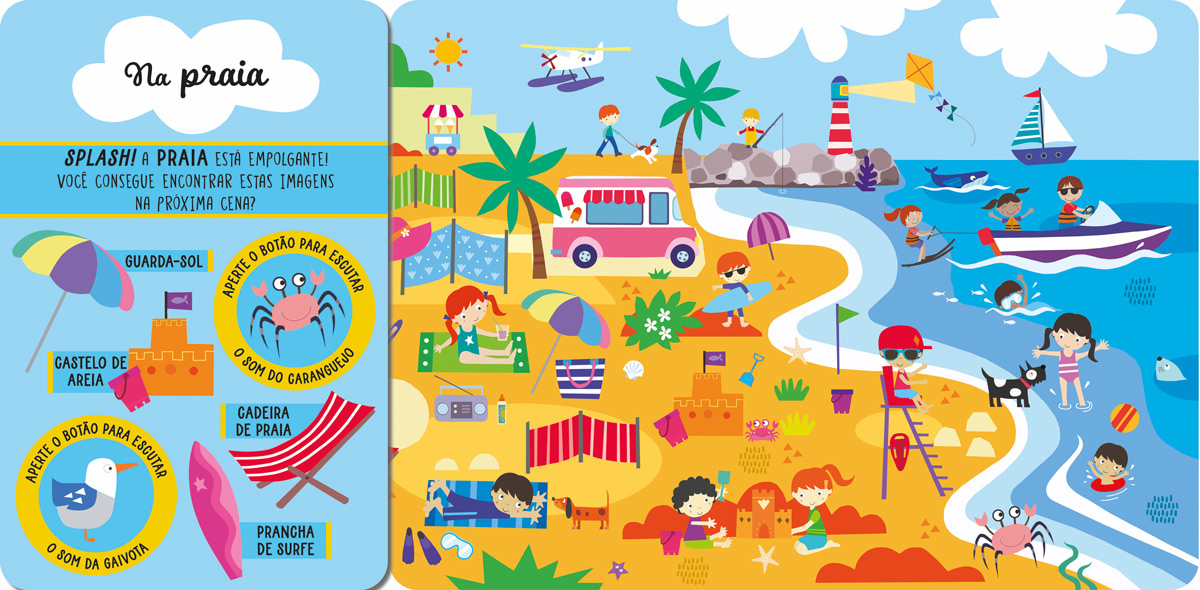 Procure e encontre em cada cena as seis imagens em destaque e ouça os sons divertidos deste livro para ler, ouvir e brincar!