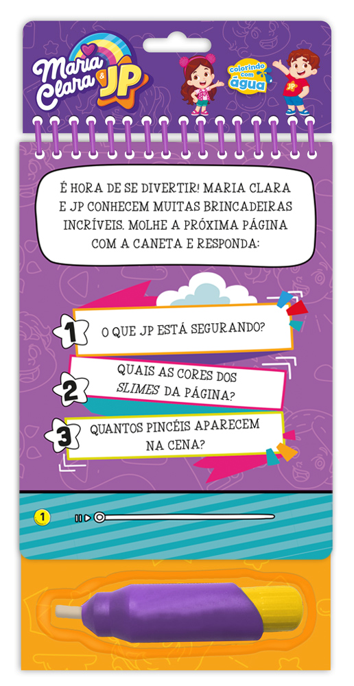 Livro para colorir usando água. A imagem surge quando a folha é pintada com a caneta de água e desaparece minutos depois, possibilitando que o livro seja colorido inúmeras vezes.