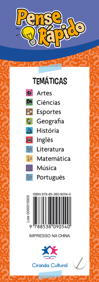 É hora de colocar a cabeça para funcionar! Chame um amigo para brincar. Leia uma pergunta e conte até dez. Para conferir a resposta, basta olhar na página seguinte da mesma cor. Quem será o mais esperto?