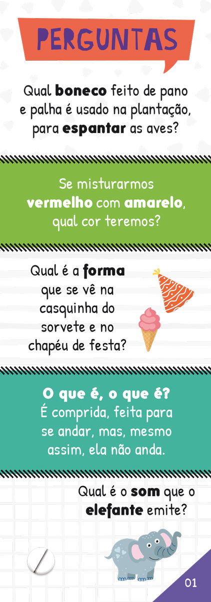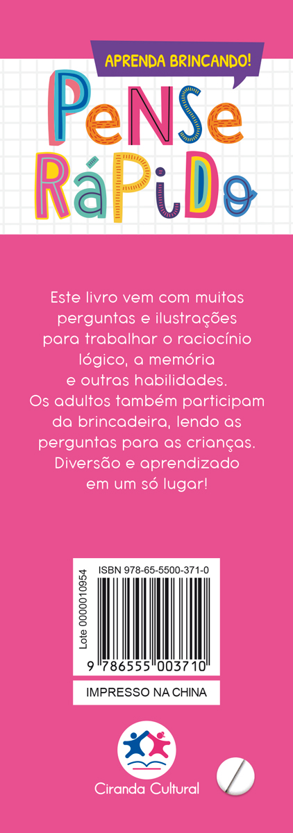 Com muitas perguntas e ilustrações para trabalhar o raciocínio lógico, a memória e outras habilidades, as crianças aprenderão brincando. Os adultos também participam, lendo as perguntas para elas. Diversão e aprendizado em um só lugar!