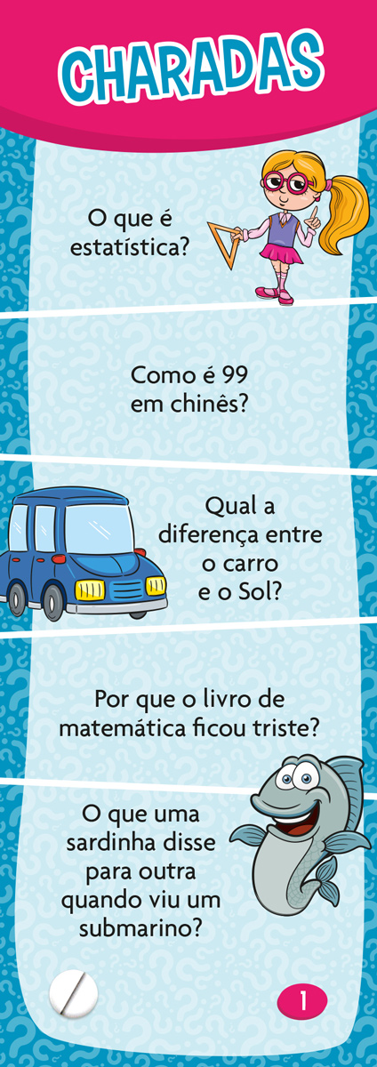 É hora de colocar a cabeça para funcionar! Chame um ou mais amigos e desafie-os a descobrir as respostas dessas divertidas charadas.