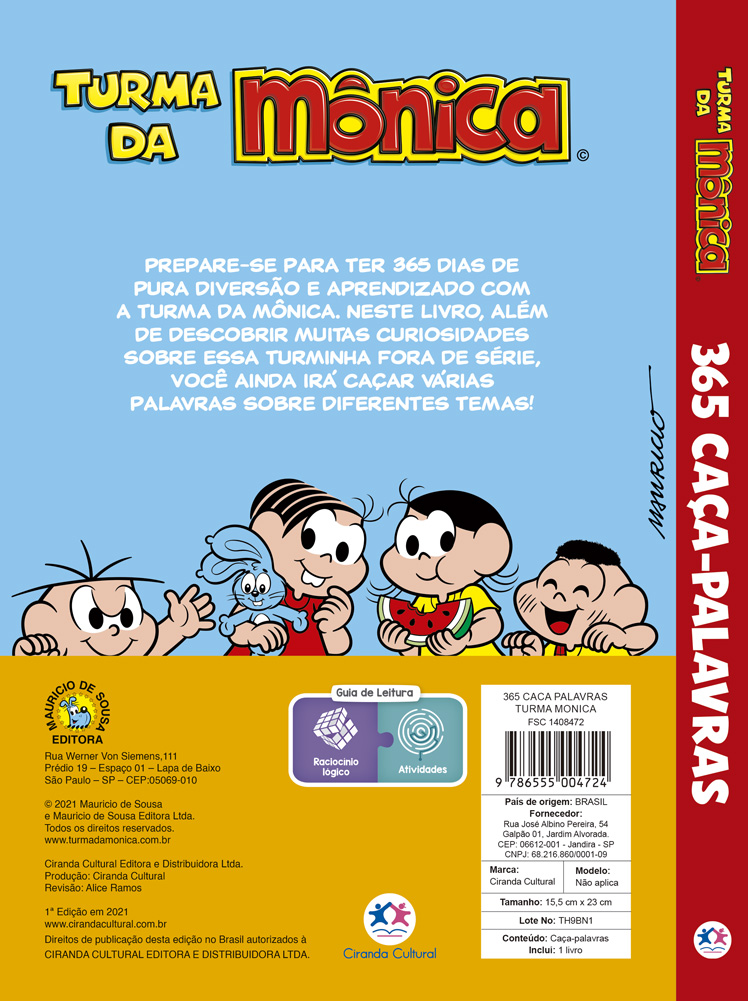 Prepare-se para 365 dias de pura diversão e aprendizado com a Turma da Mônica. Neste livro, além de descobrir muitas curiosidades sobre essa turminha fora de série, você ainda irá caçar inúmeras palavras sobre diferentes temas!